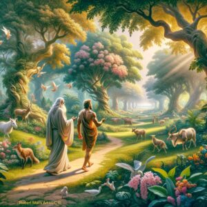 I found myself in a place of untamed beauty, where time stood still and the rhythm of life pulsed in every leaf, every blade of grass. The Lord God had crafted a sanctuary of resplendent colors and vibrant life, a paradise known as Eden. It was there that I first drew breath, where dust and divine breath fused to create something entirely new – me.