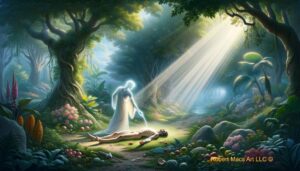 When I awoke, I found myself not alone. The Lord stood before me, His divine countenance radiating love and compassion. But it wasn’t Him that drew my attention. It was her.