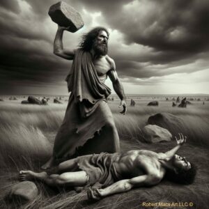 The air seemed to hold its breath; the once cheerful birdsong now replaced with an eerie silence. The tranquility of the field was shattered by a heinous act of violence, staining the soil with Abel’s innocent blood.